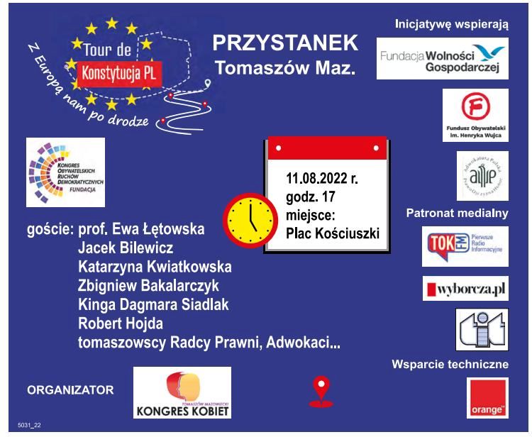Tour de Konstytucja PL to wydarzenie dla wszystkich demokratów i demokratek z udziałem prawniczek i prawników. Ze specjalnym egzemplarzem konstytucji akcja odbyła się już w ponad 90 miastach całej Polski. Jej patronem jest Adam Bodnar, który ostatnio gościł w Tomaszowie w ramach cyklu "Dzień Motyla".