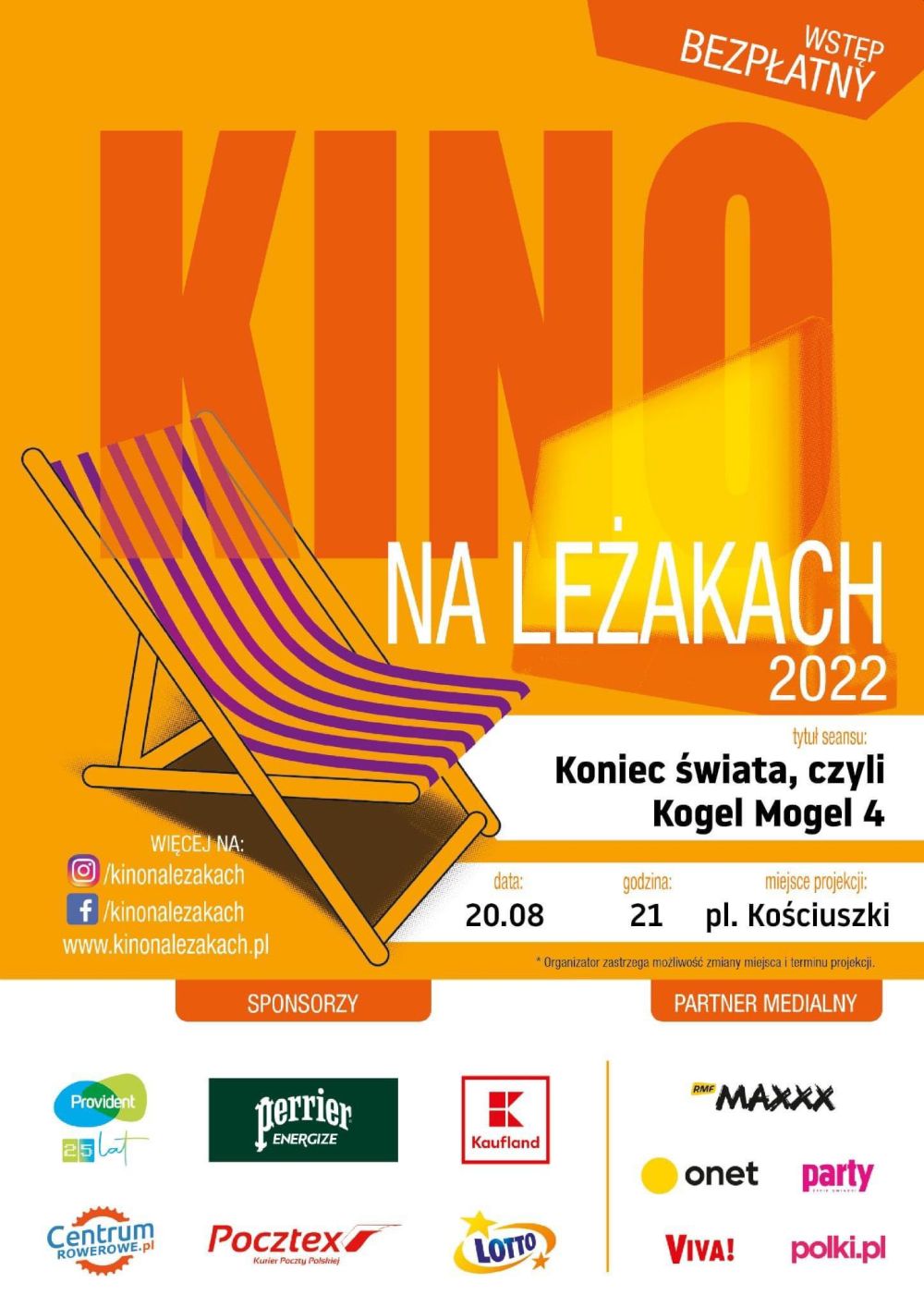 20 sierpnia o godzinie 21.00 na plac Kościuszki zawita "Kino na leżakach".