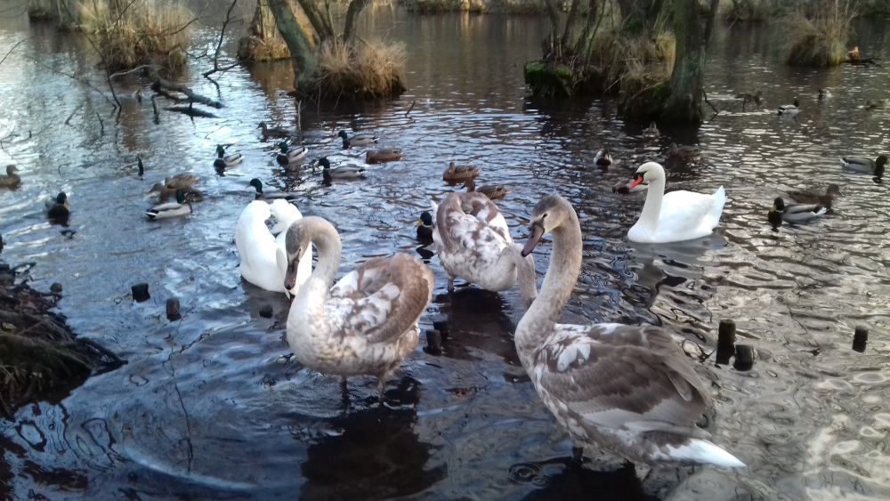 Choroba "anielskich skrzydeł" deformuje ostatni staw w skrzydle łabędzi i uniemożliwia ptakom latanie. Pamiętajmy, że ptaki wodne żywią się głównie roślinami podwodnymi. A jak już chcemy je dokarmiać, to najlepiej ziarnem, otrębami, surowymi lub gotowanymi warzywami bez przypraw.