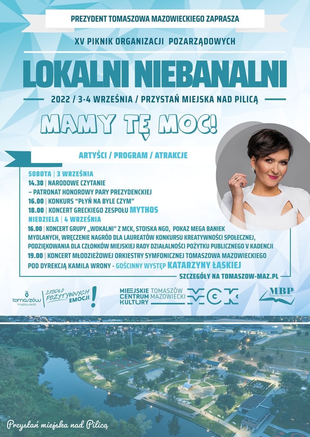 Impreza odbędzie się na Przystani Miejskiej nad Pilicą pod hasłem "Mamy tę moc!" . W sobotę o godz. 14.30 odbędzie się Narodowe Czytanie, o godz. 16 konkurs "Płyń na byle czym", a o godz. 18 koncert greckiego zespołu MYTHOS. W niedzielę o godz. 16 można będzie posłuchać występów grupy Wokalni działającej w Miejskim Centrum Kultury. Odbędzie się pokaz baniek mydlanych i prezentacje stoisk organizacji pozarządowych. W czasie imprezy laureatom Konkursu Kreatywności Społecznej zostaną wręczone nagrody. O godz. 19 na scenie wystąpi Młodzieżowa Orkiestra Symfoniczna Tomaszowa Mazowieckiego ze specjalnym, gościnnym udziałem Katarzyny Łaskiej, której Rada Miejska naszego miasta w 2021 roku nadała tytuł "Zasłużonej dla Tomaszowa Mazowieckiego". Nie zabraknie atrakcji i zabaw dla dzieci.