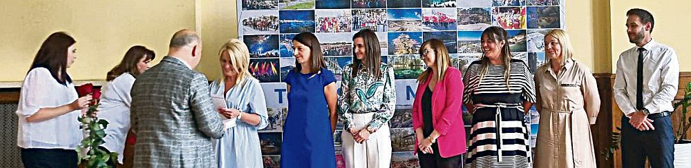Odbyło się też wręczenie powierzenia stanowisk dyrektorom placówek oświatowych podległych miastu. W czerwcu br. ogłoszono bowiem konkursy na stanowiska dyrektorów szkół, co związane było z kończącymi się kadencjami lub przejściem dotychczasowych dyrektorów na emeryturę. Ewa Goździk-Szczepańska pozostała dyrektorką Zespołu Szkolno-Przedszkolnego nr 2, Ligia Twardowska została dyrektorką ZS-P nr 3, Ewa Brzezińska pozostała dyrektorką Zespołu ZS-P nr 6, Aneta Jarząbek jest dalej dyrektorką ZS-P nr 7, Elżbieta Wilczyńska pozostała dyrektorką ZS-P nr 8, Wioletta Madej będzie kierować ZS-P nr 9, Dorota Karwas pozostała dyrektorką Zespołu Przedszkolnego, a Justyna Kubiak pozostała dyrektorką Szkoły Podstawowej nr 8.