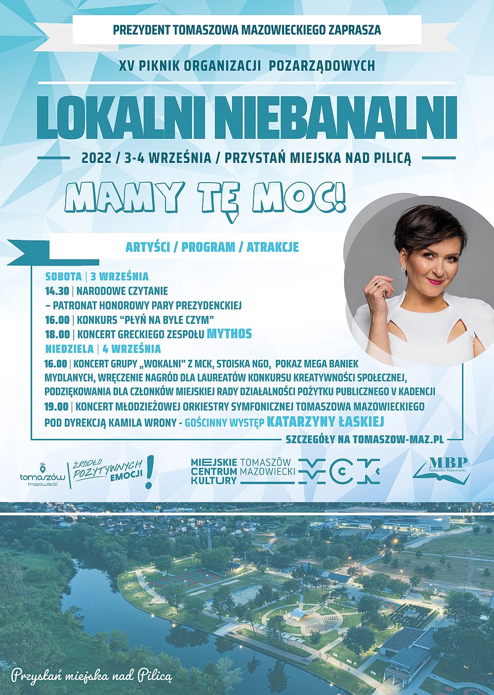 W sobotę o godz. 14.30 odbędzie się Narodowe Czytanie, o godz. 16 konkurs "Płyń na byle czym", a o godz. 18 koncert greckiego zespołu MYTHOS. W niedzielę o godz. 16 można będzie posłuchać występów grupy Wokalni działającej w MCK. Odbędzie się pokaz baniek mydlanych i prezentacje stoisk organizacji pozarządowych. Laureatom Konkursu Kreatywności Społecznej zostaną wręczone nagrody. O godz. 19.00 na scenie wystąpi Młodzieżowa Orkiestra Symfoniczna Tomaszowa Mazowieckiego z udziałem Katarzyny Łaskiej.