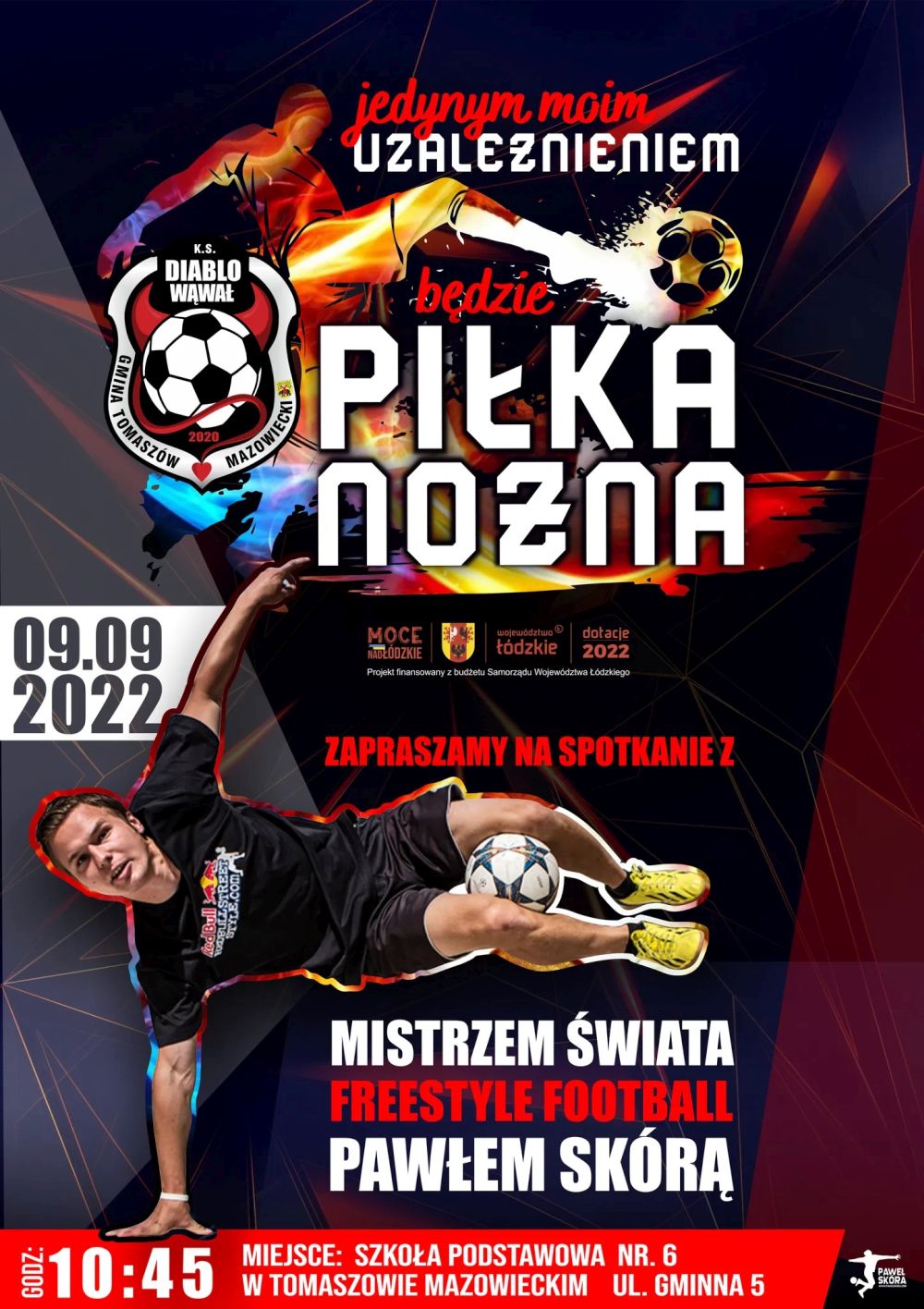 Paweł Skóra - mistrz świata w freestyle footballu da pokaz swoich umiejętności. W piątek, 9 września o godz. 8.00 będzie prezentował się w szkole w Smardzewicach.