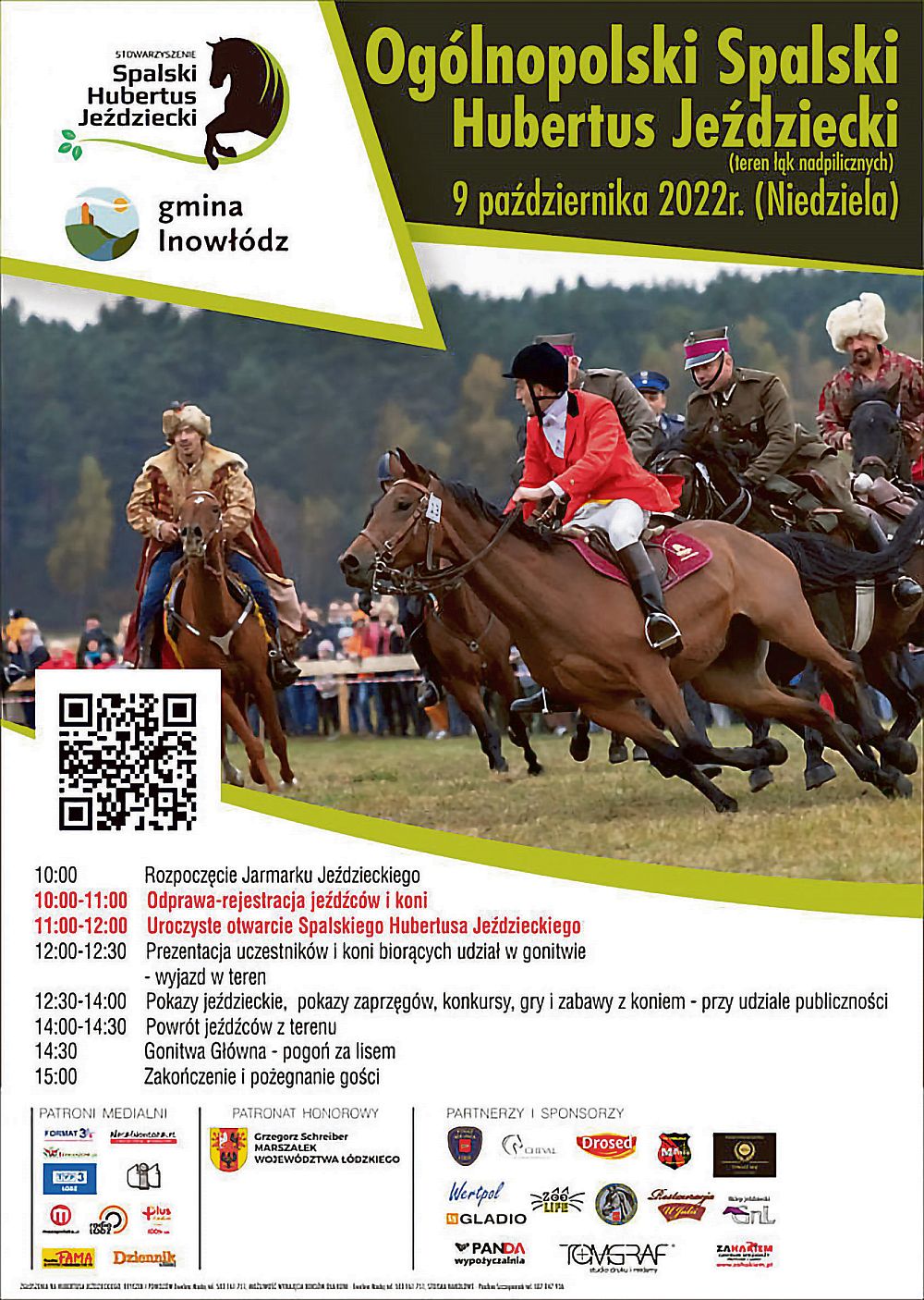 W niedzielę, 9 października na terenach łąk nadpilickich, pomiędzy Spałą a Brzustowem, rozpocznie się Ogólnopolski Spalski Hubertus Jeździecki. Już o godz. 10.00 ruszy jarmark, a godzinę później nastąpi odprawa jeźdźców i koni. Zaprezentują się sokolnicy. Oficjalne otwarcie zaplanowano na godz. 11.00. O godz. 12.00 będzie prezentacja uczestników gonitwy (wyjadą w teren), a pół godziny później rozpoczną się pokazy jeździeckie. Będą również gry i zabawy z udziałem publiczności. Atrakcją będą pokazy hippiczne: jeździeckie, kaskaderskie, zaprzęgów, amazonek oraz wybór miss. Na godz. 14.30 zaplanowano główną gonitwę, czyli pogoń za lisem. - Cieszę się, że po rocznej przerwie impreza wraca. To będzie jedno z największych wydarzeń w naszej gminie w tym roku. Nie ma Dożynek Prezydenckich, więc to hubertus przyciąga widzów z całej Polski. Warto zarezerwować sobie czas i przyjechać na hubertusa - czeka moc atrakcji - zachęca Bogdan Kącki, wójt gminy Inowłódz, która jest jednym z organizatorów imprezy.