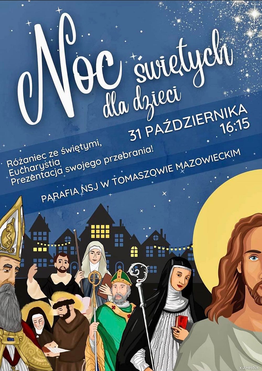 O godz. 16.15 rozpocznie się w niej "Noc świętych dla dzieci". Organizator zachęca, by (nie tylko) najmłodsi przyszli w przebraniach postaci świętych, które będzie można krótko zaprezentować po wspólnym różańcu i mszy.