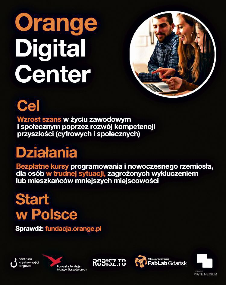 Do 15 listopada Fundacja Orange przyjmuje zgłoszenia do Szkoły Kodowania Orange Digital Center, czyli na bezpłatne profesjonalne kursy programowania połączone z doradztwem zawodowym.