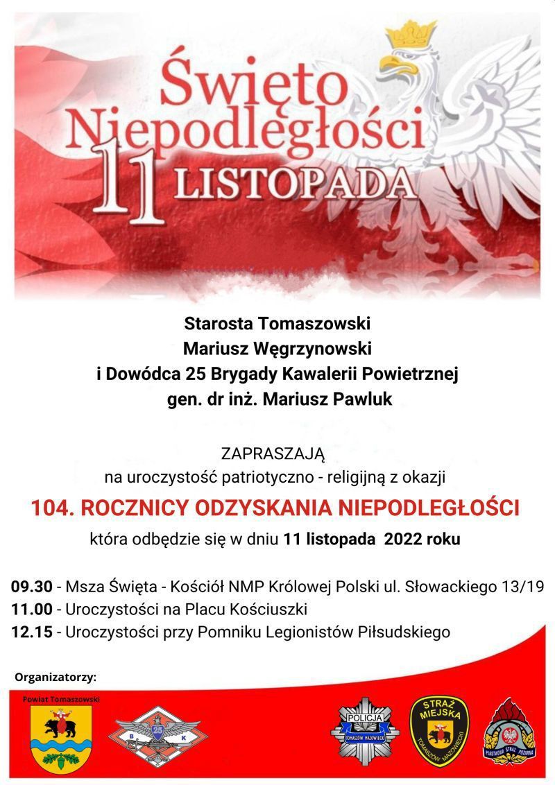 Starostwo Powiatowe i 25. Brygada Kawalerii Powietrznej organizują wspólnie uroczystości z okazji Święta Niepodległości.