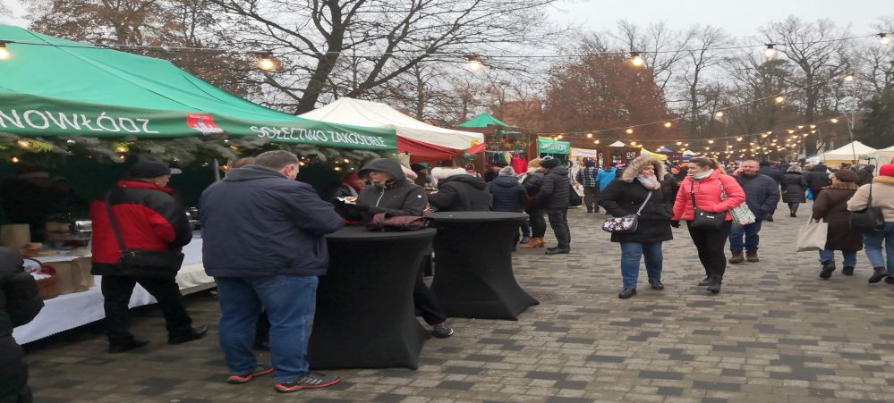 Ostatnia tegoroczna, trochę niespodziewana, odsłona Spalskiego Jarmarku Antyków i Rękodzieła miała miejsce minionej niedzieli. Antyków prawie nie było, a jeśli, to nie bardzo związane ze świętami Bożego Narodzenia. Za to rękodzieła było mnóstwo. Były stroiki i ozdoby choinkowe, kartki świąteczne wykonane różnymi metodami, często artystyczne. Przywieziono mnóstwo artykułów spożywczych. Kilka kramów oferowało miody konsumpcyjne, a przy okazji wyroby z wosku, np. świeczki w kształcie aniołków, reniferów, mikołajów. Sporo było stoisk z sokami i napojami. Było rzemieślnicze piwo z browaru Koreb. Niestety na zimno. Nie brakowało serów. Ryby w różnych gatunkach i postaciach oferował tylko jeden sprzedawca. Jak święta, to i choinki w donicach. Piekarze przygotowali duży wybór ciast, chlebów i pierników, które nawiązywały do świąt i zimy. A jak zima, to i ciepłe odzienia. Od futer, kurtek po ciepłe czapki, szaliki, rękawiczki i skarpety. Na wigilijny stół można było nabyć koronkowe obrusy i serwetki. Były też szydełkowe torby na prezenty w kształcie butów. Kramik, w którym urzędowało grono damskich mikołajów w stosownych kubraczkach i czapeczkach, oferował świąteczne gadżety wykonane przez podopiecznych Warsztatów Terapii Zajęciowej prowadzonych przez Fundację Razem z ul. Polnej w Tomaszowie.