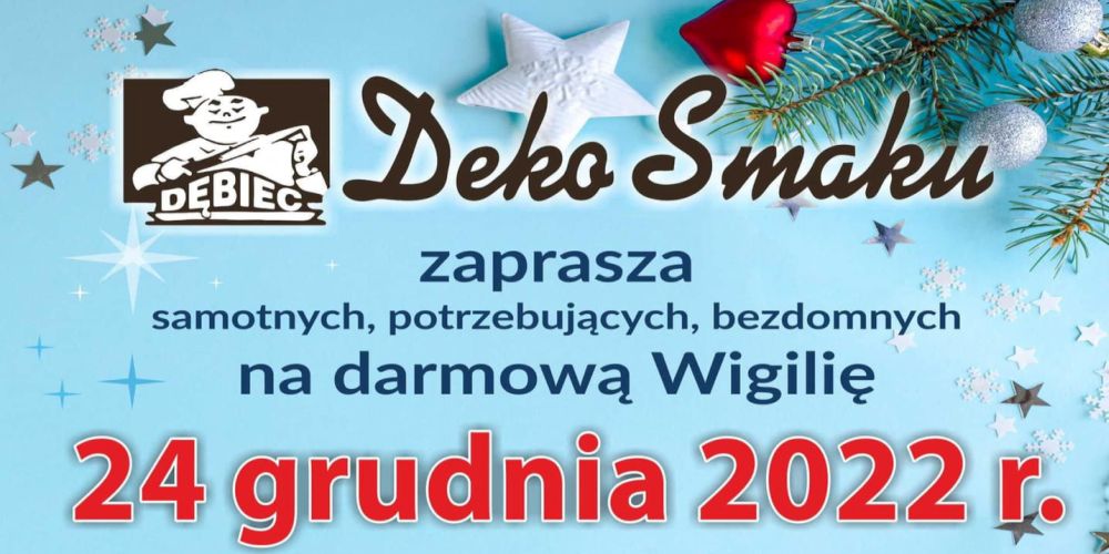 Tradycyjnie już, 24 grudnia, odbędzie się wigilia dla osób samotnych, bezdomnych i potrzebujących, organizowana przez państwa Dębców, właścicieli Deko Smaku. Ze względu na inflację i biedę pewnie przyjdzie na nią więcej osób niż w latach ubiegłych.