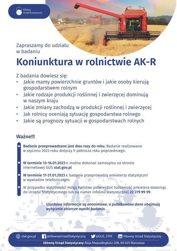 Do końca stycznia na terenie całego kraju Główny Urząd Statyczny prowadzi cykliczne Badanie Koniunktury w Gospodarstwach Rolnych.