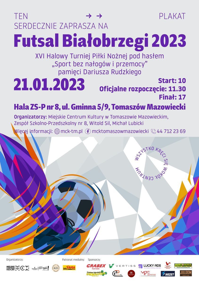 Miejskie Centrum Kultury jest organizatorem XVI halowego turnieju piłki nożnej pod hasłem "Sport bez nałogów i przemocy", który odbędzie się w nadchodzącą sobotę, 21 stycznia, w hali Szkoły Podstawowej nr 6 w Tomaszowie (Białobrzegi).