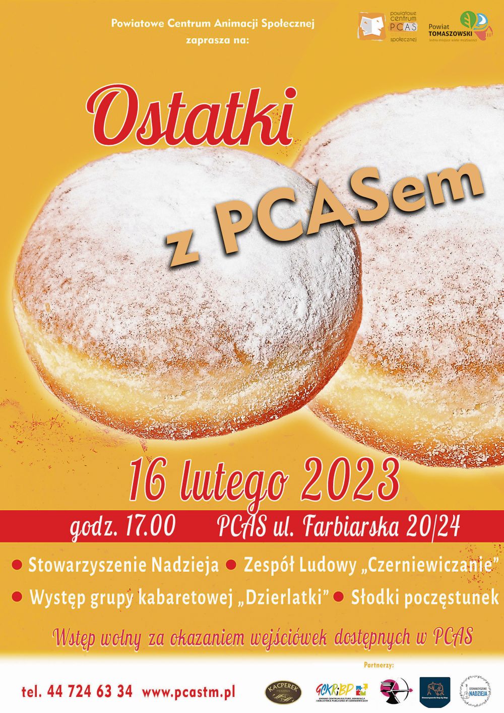 "Ostatki z PCAS-em" po raz kolejny organizuje Powiatowe Centrum Animacji Społecznej przy ul. Farbiarskiej. Będzie muzyka, spektakl i inne atrakcje. Impreza odbędzie się 16 lutego o godz. 17.00.