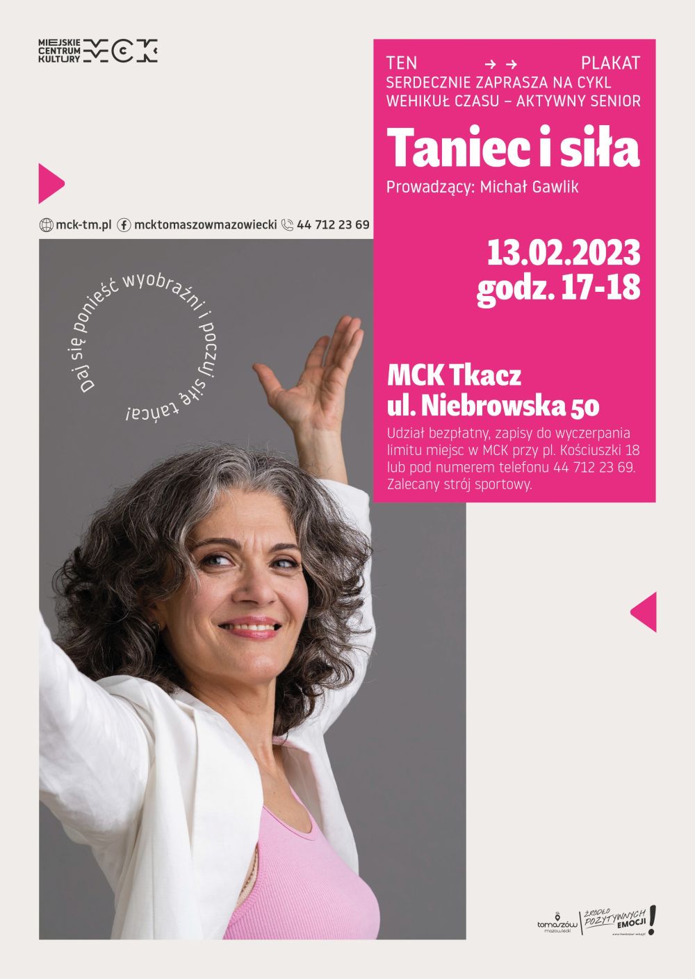 "Taniec i siła" pod takim hasłem w poniedziałek, 13 lutego o godz. 17 w Miejskim Centrum Kultury "Tkacz" odbędzie się spotkanie dla seniorów w ramach cyklu "Wehikuł czasu - aktywny senior".