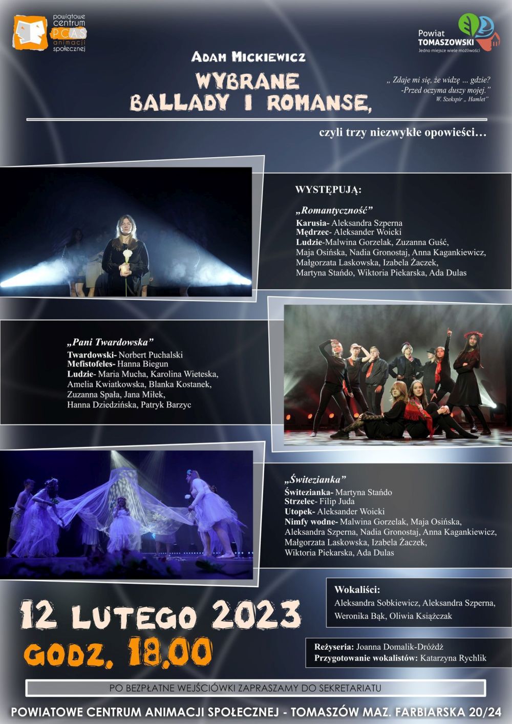 "Wybrane ballady i romanse, czyli trzy niezwykłe opowieści..." - przedstawienie pod takim tytułem odbędzie się w Powiatowym Centrum Animacji Społecznej w niedzielę, 12 lutego o godz. 18.00.