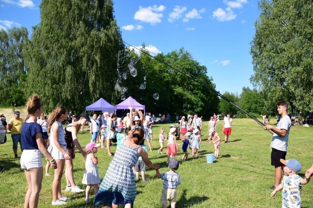 Bańki mydlane i kolory tęczy na błoniach