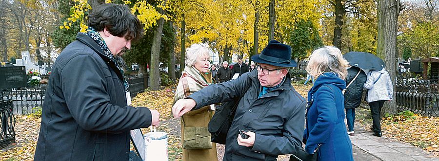 Były też akcje sprzątania opuszczonych mogił - włączyli się w nie m.in. harcerze, kibice Lechii i członkowie TPTM. W kweście uczestniczyli uczniowie, np. 28 października na cmentarzu przy ul. Dąbrowskiej z puszkami stała młodzież z ZSP nr 1 oraz ZSP nr 2. - Uczniowie z gastronomika sprzątali też groby - informuje E. Kotela. Do kwesty włączyła się także młodzież z ZSP nr 3, 6 i 8 oraz - w mniejszym stopniu - z II LO. Jak co roku wsparli ją tomaszowscy strzelcy i harcerze. Niezawodni w kwestowaniu są również członkowie TUTW, Polski Związek Emerytów, Rencistów i Inwalidów, ZNP czy Klub Kibica Lechii z Kamilem Borkowskim na czele. Przy cmentarnych bramach spotkać można było rzecz jasna przedstawicieli TPTM, Kongresu Kobiet oraz prywatne osoby. Jak co roku nie zabrakło przedstawicieli naszej redakcji. Z puszką stał też m.in. nasz nowy poseł Adrian Witczak i członkowie Trzeciej Drogi, jak również radni miejscy i inne osoby angażujące się społecznie. Niektóre kwestowały po raz pierwszy i już zapowiadają, że włączą się w akcję za rok. - Dziękujemy Tomaszowi Zakrzewskiemu z Omnituru, który ufundował dwie ładne antyramy, oraz jego bratu Michałowi, który opracował projekt graficzny ulotek - mówi E. Kotela. Ulotki, znaczki i naklejki dostawało się za wrzucony datek.