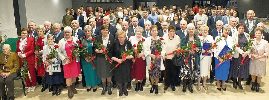 - Doczekaliście niecodziennej rocznicy, dostępnej w Polsce tylko nielicznym. Pół wieku lub więcej lat spędzonych wspólnie stanowi przykład wierności i miłości rodzinnej w jednym związku. Wasze przykłady winny być wzorem dla młodzieży zamierzającej wstępować w związki małżeńskie - mówił wójt. - Odznaczenia państwowe na piersiach jubilatów to widoczne elementy podziękowania za wszystko, co tworzyliście i budowaliście jako rodzina. Życzymy wszystkim zdrowia i doczekania następnych rocznic...