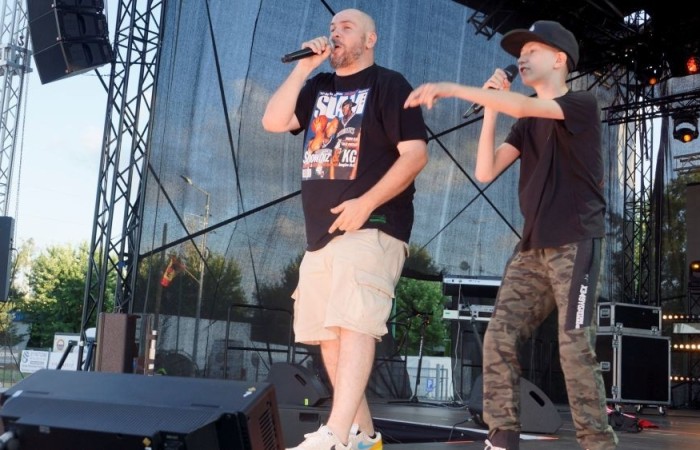 Sporo działo się także na pagórkach w tylnej części błoni. Tam jak zwykle było sporo amatorów mocnych trunków i interweniowała też kilka razy policja (o czym piszemy w osobnym tekście). Ogólnie jednak Dni Tomaszowa były spokojne i widać, że tomaszowianie umieją się bawić. Koncerty rozpoczęły się w sobotę o godz. 16.00 występami podopiecznych MCK, wśród których byli soliści z pracowni wokalnych Anny Gnatek, Beaty Niedzielskiej i Katarzyny Goljat. Na scenie wystąpiła też tomaszowska kapela Skóra z Byka (wywiad z chłopakami w osobnym tekście). Sporym zainteresowaniem cieszył się występ rapera O.S.T.R., czyli pochodzącego z Łodzi Adama Andrzeja Ostrowskiego, który był już kilka lat temu na Dniach Tomaszowa. Widać było, że w Tomaszowie i okolicach ma fanów, ludzie fajnie się bawili, a "Ostry" w swoim stylu dużo mówił, dużo przeklinał i miał dobry kontakt z publicznością. Rozbrzmiały jego nowe i stare hity i wszystkie znał 11-letni Olaf, którego raper zaprosił z publiczności na scenę. Nastolatek śpiewał razem z O.S.T.R. i trzeba przyznać, że poszło mu świetnie, zrobił po prostu show i publiczność była zachwycona. On sam powiedział do "Ostrego": "Chciałem tylko podpis na płycie, ale to jest w sumie lepszy prezent". Zaśpiewali razem kilka piosenek. Ludzie gratulują chłopakowi i jego tacie, że zaszczepił w nim miłość do rapu. Niektórzy krytykują nasycenie piosenek "Ostrego" przekleństwami i takiż koncert przy dzieciach, inni cytują za Pawłem Leśniakiem (książka "Chaos"): "Raz zwróciłem uwagę pewnej osobie, która klęła wstrętnie, odpowiedziała mi wtedy: lepiej dużo i głośno przeklinać, niż być małym, cichym skurwysynem".