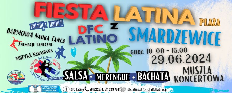 Już 29 czerwca od godziny 10.00 do 15.00 na plaży przy muszli koncertowej w Smardzewicach nad Zalewem Sulejowskim odbędzie się PIERWSZE takie wydarzenie. Przyjdź i zatańcz z instruktorami z tomaszowskiej szkoły tańca DFC Latino w rytmach karaibskiej muzyki: salsy, bachaty, merengue, cha-cha-cha.