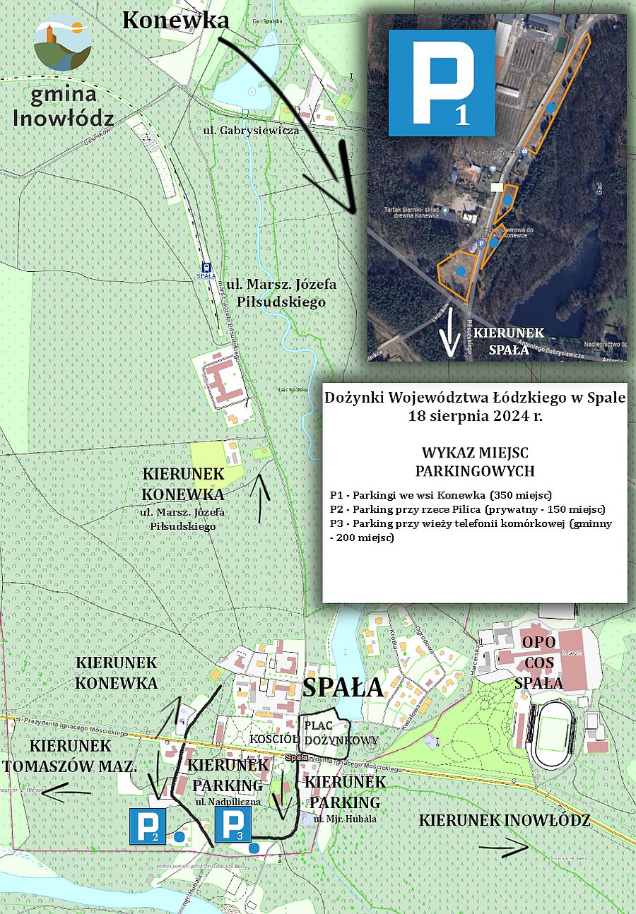 Organizacja ruchu oraz miejsc parkingowych w związku z odbywającymi się w Spale Dożynkami Diecezjalno - Wojewódzko - Gminnymi w dniach 17–18 sierpnia 2024 r.