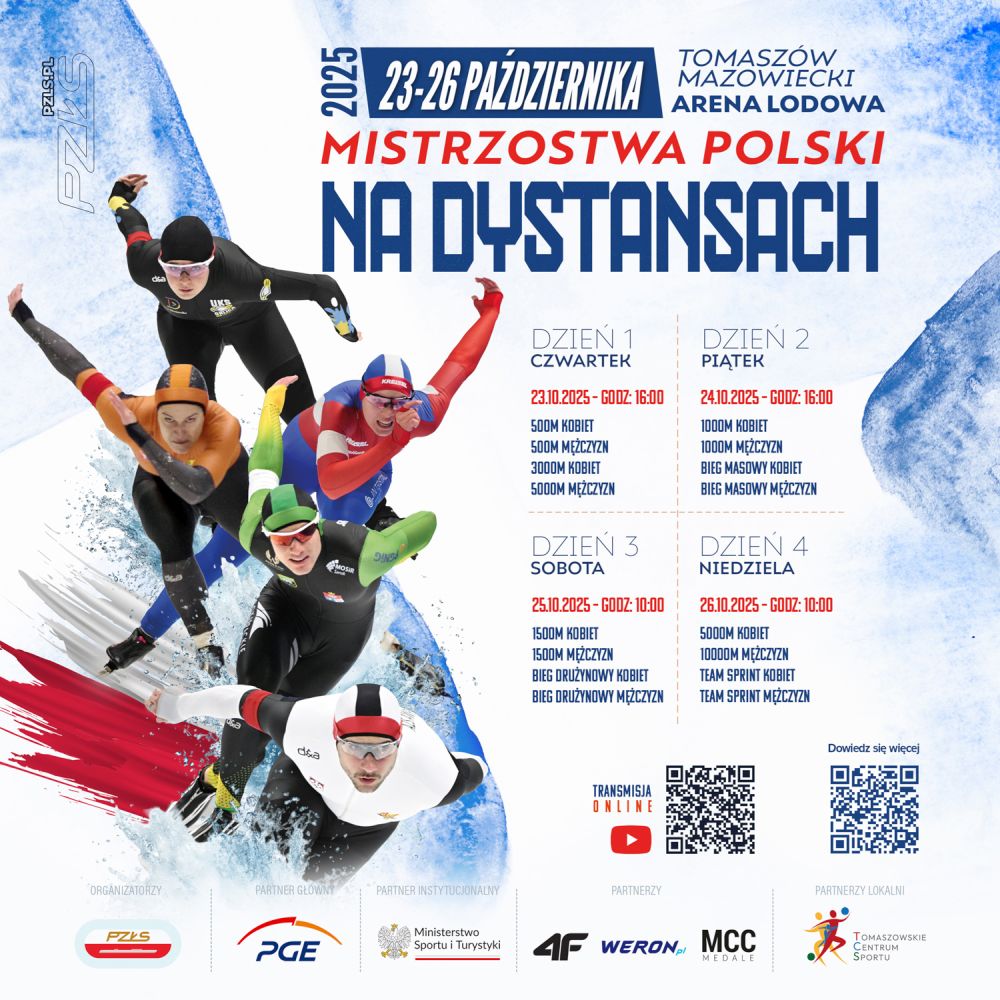 W sobotę, 25 października od godz. 10.00 łyżwiarze będą rywalizować na dystansie 1500 K i M, a później w biegu drużynowym K i M. W niedzielę, 26 października o godz. 10.00 zaplanowano biegi długie – na 5000 m K i 10 000 m M oraz sprint drużynowy kobiet i mężczyzn.