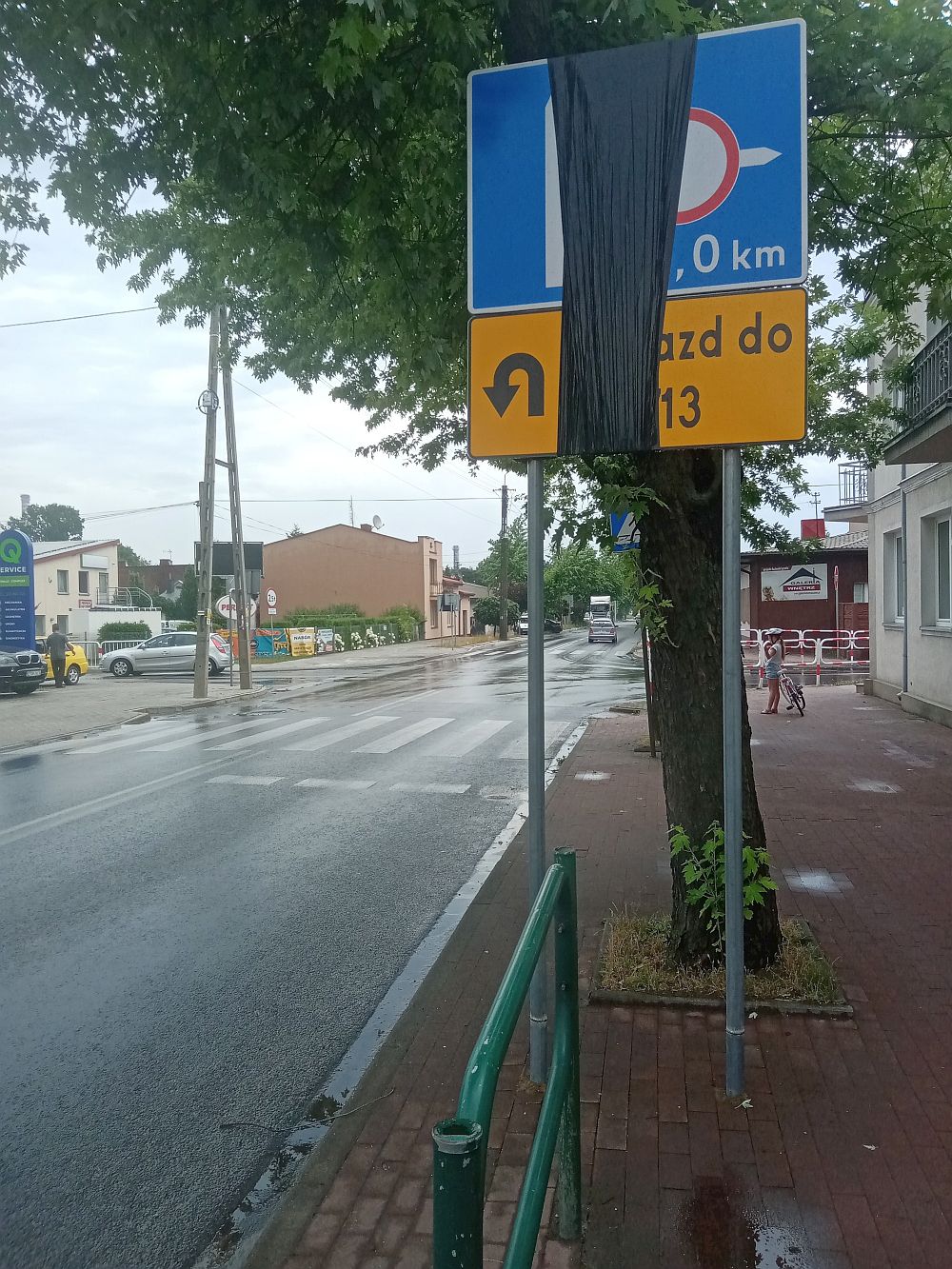 W mieście pojawiły się znaki informujące o wytyczonym objeździe. Na razie zakryte są czarną folią.