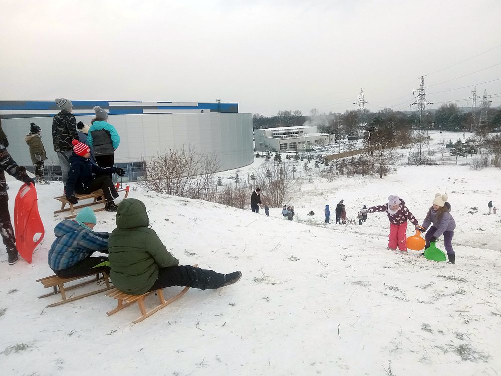 Kilka lat temu pojawił się pomysł zbudowania snowparku na tzw. górze Baśniowej, pomiędzy Areną Lodową a ul. św. Antoniego. W ramach Tomaszowskiego Budżetu Obywatelskiego przeznaczono na ten cel ponad 120 tys. zł. W 2016 r. usypano i wyprofilowano górkę do jazdy na sankach. Miały powstać hopki i przeszkody dla snowboardzistów o różnym stopniu trudności. Do tego siatki ochronne, ławki, oznaczenia i inne elementy snowparku, ale tej infrastruktury do tej pory nie ma. Te wszystkie elementy przechowywane są ponoć w Arenie Lodowej. Służby miejskie zapewniały nas, że w razie potrzeby są w stanie szybko zamontować je na stoku. W miniony weekend nie zdążyły zareagować. Spadł śnieg. Setki dzieci przyszły (i przyjechały) na białe szaleństwo na Baśniową, a siatek, ławek czy oznaczeń na stoku nie było.