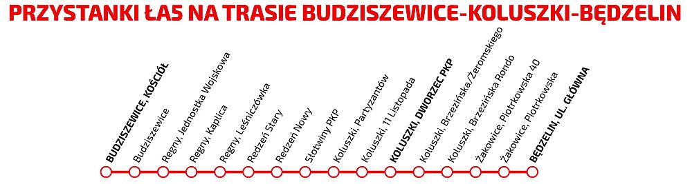 - Autobusy będą wyruszały z placu przy kościele w Budziszewicach i będzie to 14 kursów w jedną stronę od godz. 4.00 do północy - zapowiada wójt Marian Holak. Linia ŁA5 pojedzie stąd przez Regny, Redzeń Stary i Redzeń Nowy oraz Słotwiny do Koluszek i dalej, przez Żakowice, do Będzelina i taką samą trasą wróci do Budziszewic.