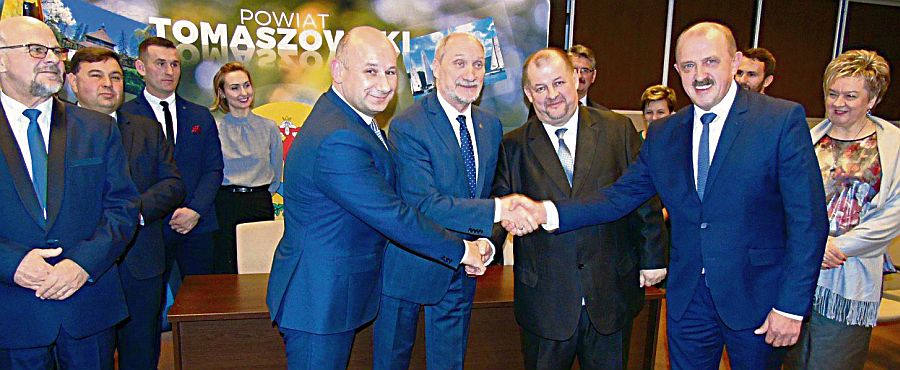 Na zdjęciu: NIBY OSOBNO, A JEDNAK WSZYSCY RAZEM. Ściskają dłonie: Marcin Witko - szef komitetu wyborczego Marcina Witko, Antoni Macierewicz i Mariusz Węgrzynowski PiS oraz Piotr Kagankiewicz szef komitetu wyborczego Wszyscy Razem