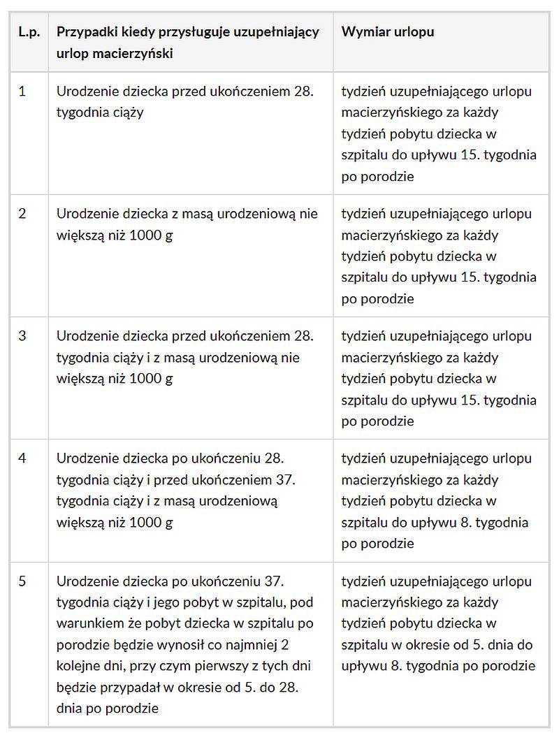 – Wymiar urlopu, a tym samym zasiłku jest zależny od: tygodnia ciąży, w którym urodzi się dziecko, jego masy urodzeniowej oraz okresu pobytu dziecka w szpitalu* – wyjaśnia Monika Kiełczyńska, regionalna rzeczniczka prasowa ZUS województwa łódzkiego (a, jak uzupełnia, w przypadku ciąży mnogiej uwzględnione zostaną odpowiednio: najniższa waga oraz najdłuższa hospitalizacja). Kwotowo świadczenie to 100 procent podstawy zasiłku.