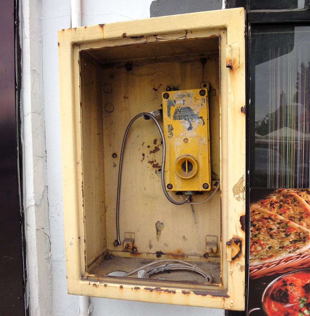 Aparat jest bez tarczy. Ma służyć potrzebującym do wezwania taxi. Taksówkarz słyszy dzwonek, podnosi słuchawkę, przyjmuje zlecenie i jedzie do klienta. Tak powinno być, ale nie jest.