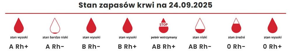 W miniony piątek, 19.09 RCKiK wstrzymało pobieranie krwi grupy AB Rh+, co ma związek z jej bardzo dużymi zapasami w łódzkim banku krwi. Do odwołania posiadający ją mogą jedynie oddać osocze metodą plazmaferezy w siedzibie głównej Centrum (to jest w Łodzi przy ul. Franciszkańskiej 17/25, wizytę umawia się pod numerem tel. 42 616-14-57). Wysoce pożądane są natomiast przede wszystkim donacje osób z grupami A Rh– (stan zapasów której jeszcze przed kilkoma dniami był wręcz alarmowy) oraz AB Rh–, a także 0 Rh–.