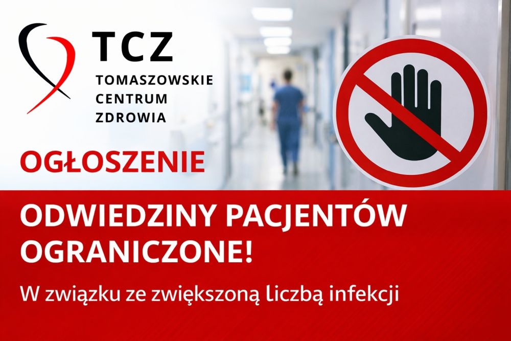 Tomaszowskie Centrum Zdrowia we wtorek, 3 lutego wydało komunikat, w którym poinformowało o wprowadzeniu ograniczeń w odwiedzinach pacjentów przebywających w oddziałach szpitalnych.