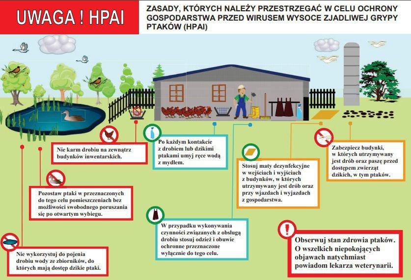 Ryzyko wystąpienia w Polsce wysoce zjadliwej grypy ptaków (HPAI) jest wysokie - ostrzega Państwowy Instytut Weterynarii - Państwowy Instytut Badawczy w Puławach. Hodowcy drobiu muszą wdrożyć określone środki bezpieczeństwa.