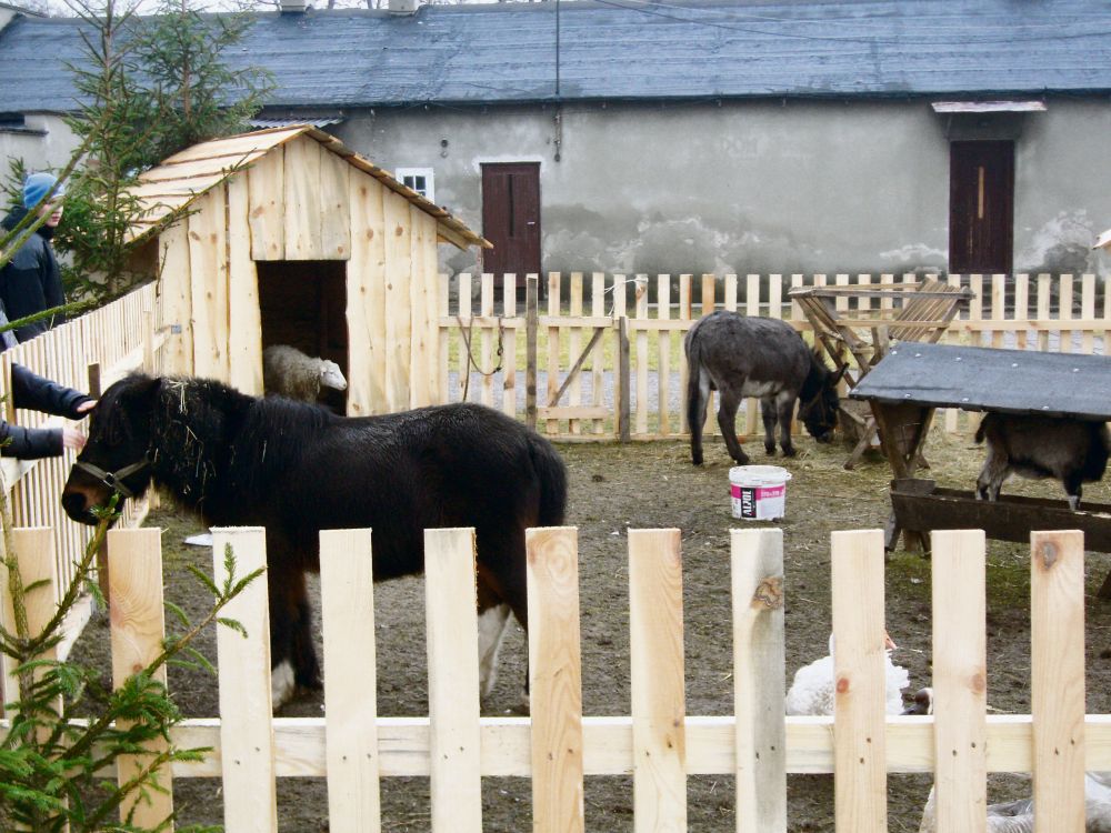 Będą w niej: kucyki, osły, kaczki, gęsi, króliki, kury i parafialne kozy. Zagroda dla zwierząt będzie na pewno dużą atrakcją dla najmłodszych. Jednak najważniejszą część stanowi żłóbek. Tomaszowską szopkę, wzorowaną na tradycji łódzkiej (co roku stajenka ze zwierzętami staje przed archikatedrą), zapoczątkował ks. Ryszard Stanek, były proboszcz parafii NSJ.