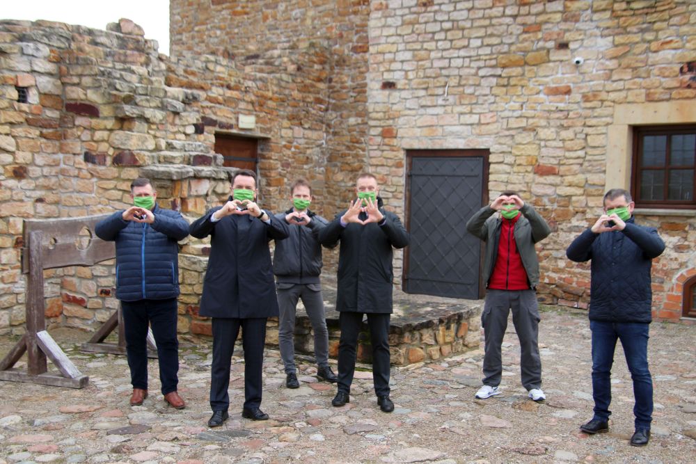 Wójt Bogdan Kącki, przewodniczący Rady Gminy Robert Pawłowski, radni: Piotr Krotosz, Arkadiusz Łon, Janusz Wilkowiecki oraz Roman Rodakowski spotkali się na zamku i nagrali życzenia dla pań.