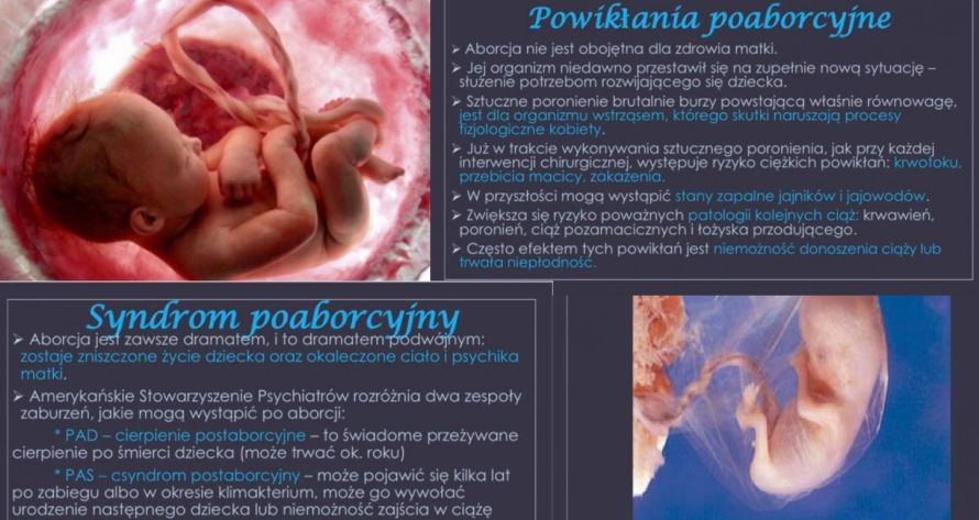 W ramach prezentacji multimedialnej nauczycielka przekazuje subiektywny, antyaborcyjny światopogląd związany z ruchami pro-life. Uczniowie dowiadują się, że aborcja to nie zabieg przerywania ciąży. O aborcji mówi się zazwyczaj zabieg czy przerwanie ciąży - a przecież skoro istnieje życie, może je przerwać tylko śmierć - czytamy na jednym ze slajdów prezentacji. W następnych nauczycielka straszy młodzież licznymi powikłaniami fizycznymi i psychicznymi jakie - jej zdaniem - powstają po przerwaniu ciąży.