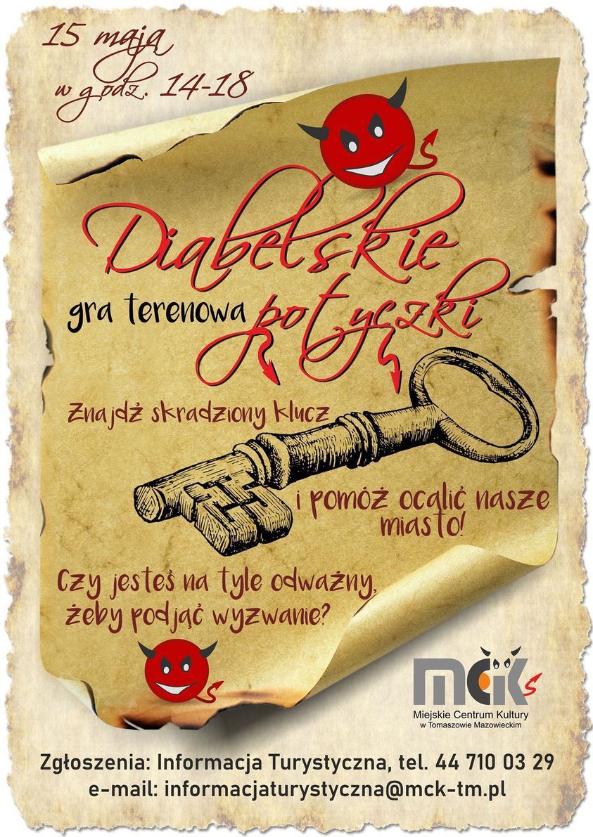W czasie Nocy Muzeów można też odwiedzić Skansen Rzeki Pilicy Miejskiego Centrum Kultury. - Od godz. 16 do 22 wstęp będzie bezpłatny. Po zmroku turyści będą mogli zobaczyć dodatkowo wyjątkową iluminację. Zwiedzanie odbywa się w reżimie sanitarnym - informuje Jacek Paprocki, dyrektor MCK. Elementem Nocy Muzeum będzie też gra terenowa pn. "Diabelskie potyczki". Jak zachęcają organizatorzy, czyli wspomniany MCK, gra jest związana z tym, że w Grotach Nagórzyckich z jednej ze ścian osunął się piach, odsłaniając zasypaną wcześniej bramę do piekła. Diabeł nagórzycki wydostał się ze swojego królestwa ciemności i wykradł klucz do naszego miasta. Zagroził, że jeśli go nie odnajdziemy, Tomaszów zapadnie się pod ziemię". Można temu zapobiec, rozwiązując przygotowane zagadki. - Bedą one pozostawione przez diabła w różnych punktach miasta. Wskazówki w nich zawarte doprowadzą do miejsca ukrycia skradzionego przedmiotu - tłumaczy Marzanna Majewska z MCK. Poszukiwania odbędą się 15 maja (sobota) w godz. 14-18.