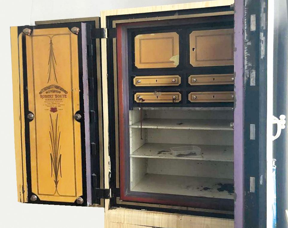 Jak wynika z ozdobnych napisów na wewnętrznej stronie drzwi kasy, jej producentem była warszawska Fabryka Kas Pancernych Robert Bohte założona w 1840 r.