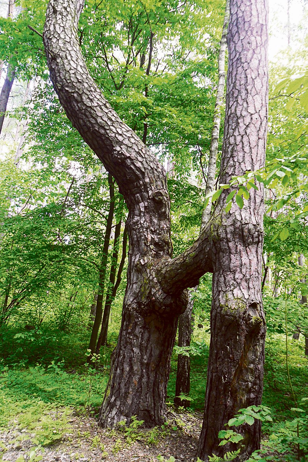 Przy leśnej drodze prowadzącej od DW48 (od Tomaszowa do Spały) w stronę łąk nadpilickich rosną budzące zainteresowanie odwiedzających te strony dwie sosny bliźniaczki.