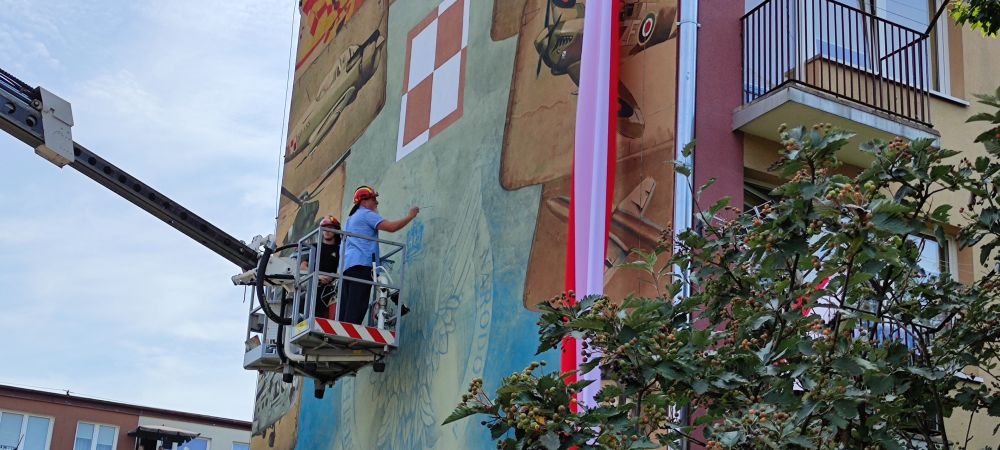 Następnego dnia od wczesnych godzin porannych trwały przygotowania do wizyty ministra Mariusza Błaszczaka. O godz. 11.00 miało nastąpić uroczyste odsłonięcie muralu "Mur, ale historia Wojska Polskiego", będącego upamiętnieniem szlaku polskiego oręża w województwie łódzkim. Zbierający się pod blokiem przy ul. Mazowieckiej przedstawiciele służb mundurowych zwrócili uwagę, że mural jest wybrakowany. Orzeł w logo Ministerstwa Obrony Narodowej nie miał korony. Brakowało też słowa "OBRONY". Niektórzy mówią, że taki był zamysł autora - orzeł i napis miały być ukryte w chmurach. Jednak tuż ok. godz. 11.00 autor, korzystając z podnośnika Państwowej Straży Pożarnej, domalował brakujące elementy. Zdaniem tomaszowskiego magistratu to nieprawda. Jak twierdzi Joanna Grześkowiak, p.o. rzeczniczki Urzędu Miasta, był to specjalny zabieg. Artysta chciał na oczach zgromadzonych mieszkańców Tomaszowa zwieńczyć swoje dzieło.