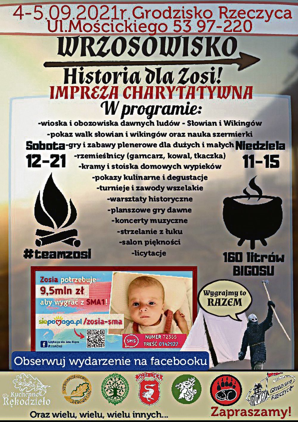 W dniach 4-5 sierpnia w Rzeczycy odbędzie się impreza pn. " Wrzosowisko - Historia dla Zosi". Odwiedzający Rzeczycę będą mogli zobaczyć pokaz walk Słowian i Wikingów oraz poznać podstawy szermierki. Przewidziane są również gry i zabawy plenerowe - zarówno dla dzieci jak i dorosłych. Nie zabraknie kramów i stosik z domowymi wypiekami, pokazów kulinarnych i degustacyjnych, warsztatów historycznych i koncertów zespołów muzycznych. Każdy będzie mógł pograć w gry planszowe, postrzelać z łuku i oczywiście wziąć udział w licytacjach.