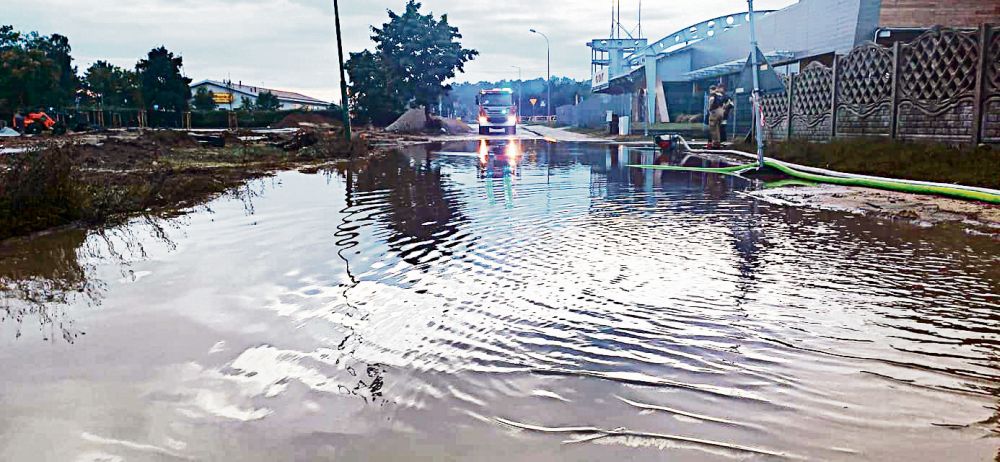W środę, 1 września zawalił się komin w jednym z domów w Sangrodzu. Na szczęście nikomu nic się nie stało. Strażacy wypompowywali też wodę z zalanej piwnicy w Adamowie (gm. Budziszewice). Natomiast na ul. Konstytucji 3 Maja pęknięta rura spowodowała zalanie sklepu meblowego.