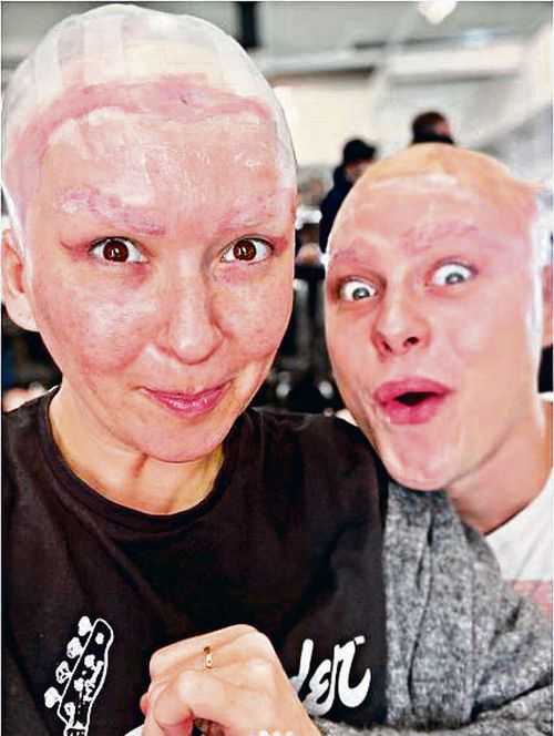 Fot. 2. - Od naciągów i łysiny zaczynają się wszystkie nasze przemiany w @twojatwarzbrzmiznajomo - relacjonuje Kasia Łaska. W kogo się wcielała? To na razie tajemnica (na zdj. z Adamem Zdrójkowskim, fot. Instagram artystki)