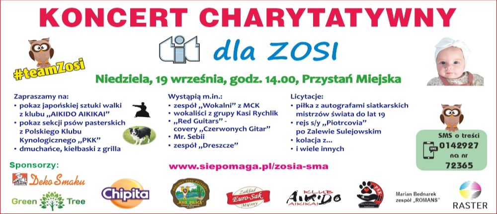 19 września o godz 14.00 na Przystani Miejskiej organizujemy koncert charytatywny pn. "TIT dla Zosi". Przygotowaliśmy szereg atrakcji, nie tylko muzycznych.