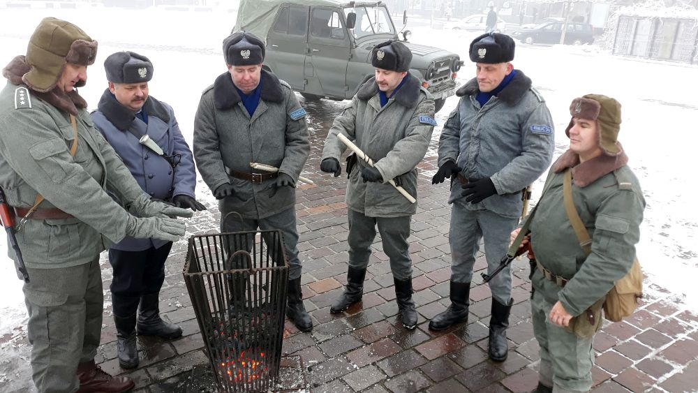 Poza tym na placu Kościuszki w godzinach popołudniowych można było zobaczyć małą inscenizację, przygotowaną przez tomaszowską Grupę Rekonstrukcji Historycznej Milicji i Ludowego Wojska Polska. Jej członkowie pokazali posterunek milicji, wojska i ZOMO z tamtego okresu. Tak jak dawniej milicjanci, tak oni teraz, 40 lat później, ogrzewali się przy koksowniku. Tomaszowianie mogli zobaczyć też radzieckiego uaza. - Chcieliśmy chociaż w tak skromny sposób uczcić pamięć o tamtych wydarzeniach i tę okrągłą rocznicę wprowadzenia stanu wojennego - mówi Andrzej Wołczyk, tomaszowski pasjonat rzeczy milicyjnych i policyjnych. Do "mundurowych" podchodzili mieszkańcy i wspominali 13 grudnia.