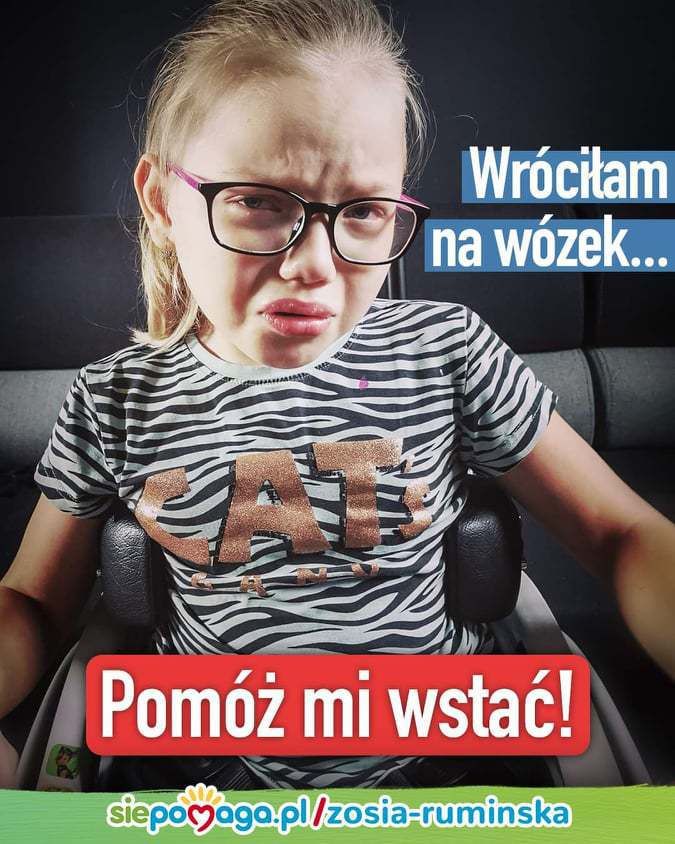 Zosia w wyniku niedotlenienia okołoporodowego ma ciężkie mózgowe porażenie dziecięce. Zmaga się też z korowym uszkodzeniem wzroku i epilepsją. - W ubiegłym roku dzięki pomocy ludzi dobrej woli przeszła w USA operację uwalniającą jej ciało od bolesnego napięcia. Dostała szansę na nowe, lepsze życie. Stawiała swoje pierwsze wymarzone kroki przy chodziku, niestety w wyniku pogorszenia się stanu bioder ponownie usiadła na wózek. Podwichnięcia stawów biodrowych zrujnowały to, co udało się jej osiągnąć - mówi Karolina Rumińska, matka dziewczynki. - U dzieci z mózgowym porażeniem dziecięcym mocno spłycone panewki nie są w stanie utrzymać kości na swoim miejscu. Nasza córeczka pomimo zabezpieczenia w najlepsze sprzęty ortopedyczne, pomimo intensywnej rehabilitacji została zakwalifikowana do pilnej operacji. Rekonstrukcja bioder to bardzo kosztowna procedura, która jest jedyną szansą na to, aby kiedyś mogła chodzić - dodaje.