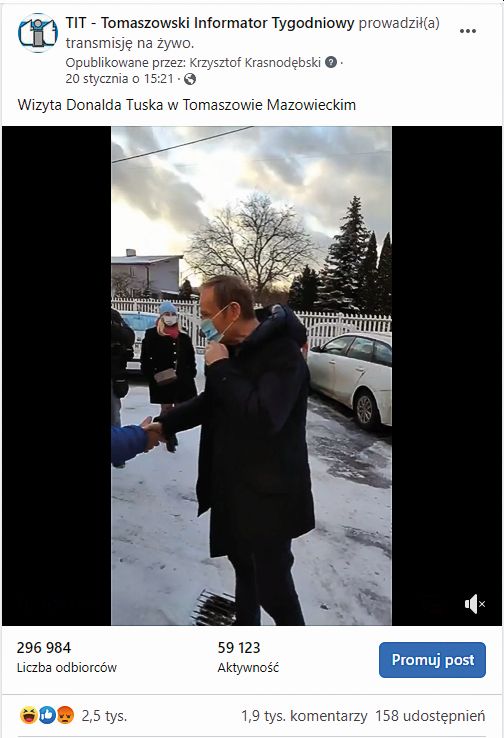 Zamieściliśmy na naszej facebookowej stronie dwa filmiki z wizyty Donalda Tuska w Tomaszowie. Zainteresowanie nimi przeszło nasze najśmielsze oczekiwania. Do środy (16 lutego) przekroczyły zasięg 550 000 odbiorców. Posypały się komentarze z całego świata. W większości nieprzychylne, bardzo nieprzychylne lub odrażająco wulgarne. Zadaliśmy sobie trud, aby sprawdzić konta kilkudziesięciu autorów wpisów. Sztampa - wąskie grono uwidocznionych znajomych, których strony zbudowane są na podobnych zasadach, podobny czas zakładania kont, kilka powielanych wpisów i brak jakichkolwiek osobistych adnotacji. Typowy prymitywny troll. Typowa jest również konstrukcja komentarzy. Bardzo krótkie, powielające kilka negatywnych określeń. Widać, że zleceniodawca nakazał używania zwrotów, które mają wywołać jak najgorsze skojarzenia: "ryży, Judasz, niemiecki, debil" powtarzają się w niemal każdym analizowanym wpisie. Co ciekawe - ten sam materiał, zamieszczony na stronie, gdzie wymagane jest logowanie, miał też sporo komentarzy, ale ich wydźwięk był zgoła inny - pozytywne i negatywne rozkładały się niemal po 50%. Ale tu nawet te negatywne nie były stekiem wyzwisk, ale uzasadnioną opinią. Po co to wszystko? Mamy myśleć, że skoro tak wielu ludzi ma takie opinie, to coś w tym musi być. Już klasyk propagandy, słynny niemiecki doktor, mawiał, że kłamstwo często powtarzane staje się prawdą. Ponadto socjologia uczy, że człowiek jako istota stadna ma skłonności do zgadzania się z poglądami otoczenia. Przypomina to nieco stado baranów, które gotowe są pójść na rzeź, bo tam idzie przewodnik stada.