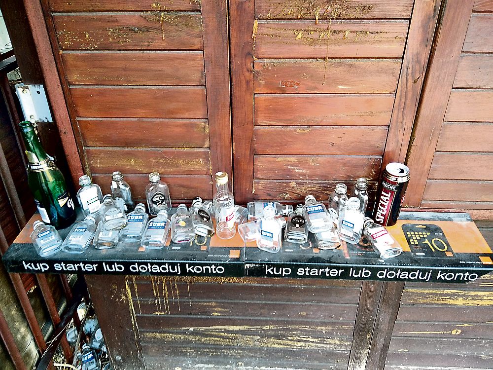 Tuż obok są kosze na śmieci, ale butelki i buteleczki tam nie trafiają. Zbiór opakowań po wyskokowych trunkach rośnie ku zadowoleniu kolekcjonerów.