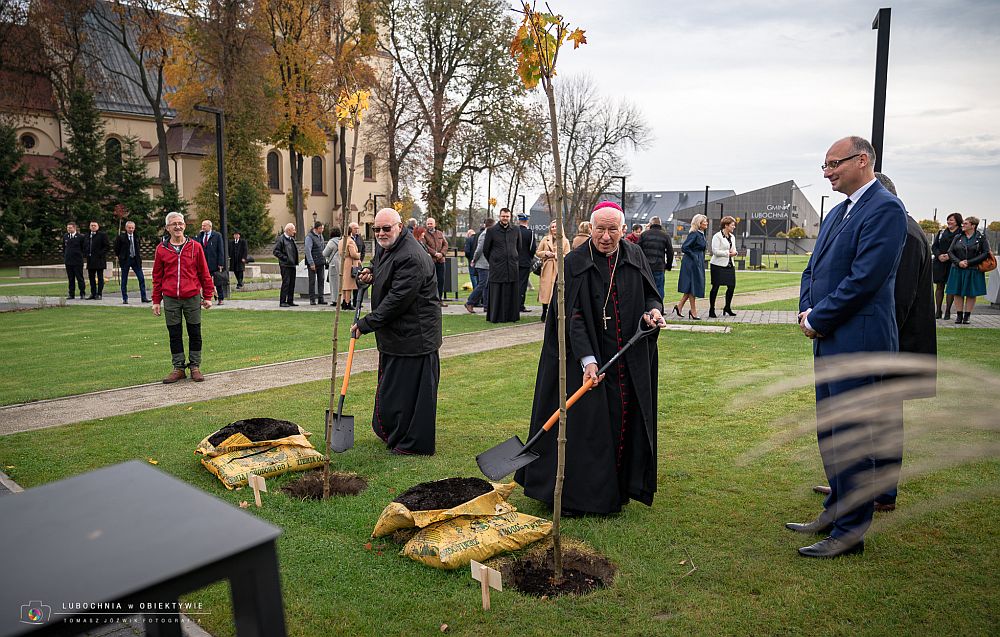 Na pamiątkę wizyty kanonicznej w lubocheńskiej parafii klony posadzili również: ordynariusz diecezji łowickiej - ksiądz biskup Andrzej Dziuba i proboszcz parafii Wniebowzięcia NMP - ksiądz Tomasz Bojanowski.